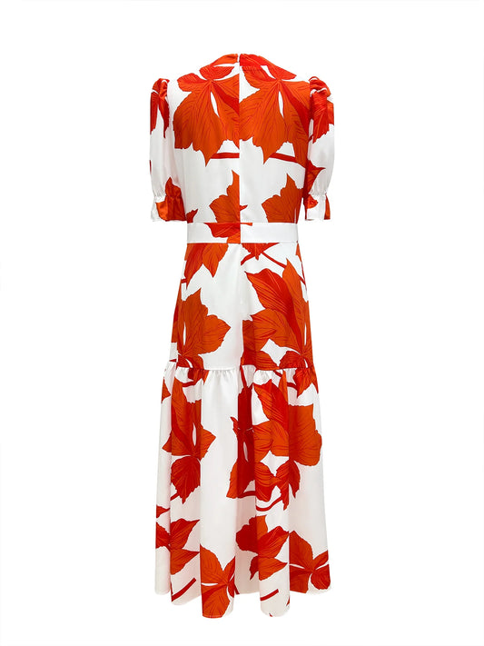 Lynor™ | Unique Print, Loose Neckline & Back Ties Midi Dress